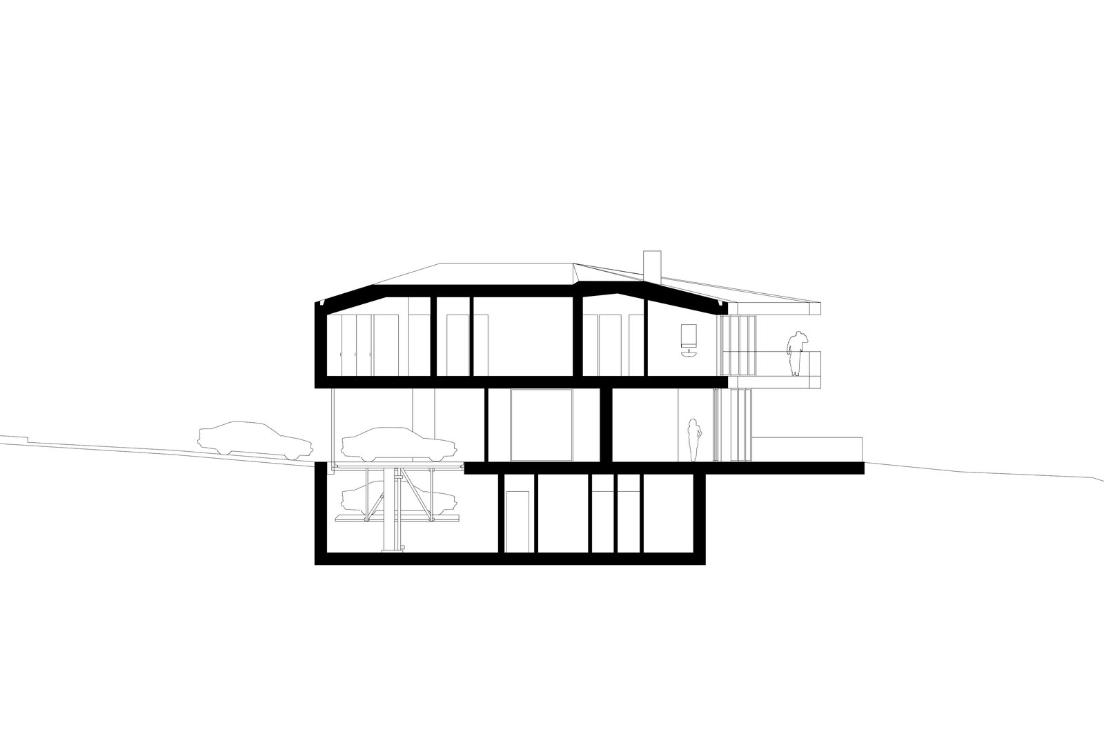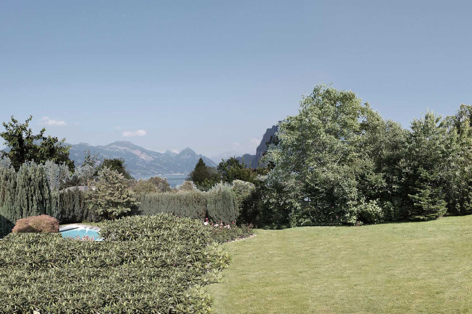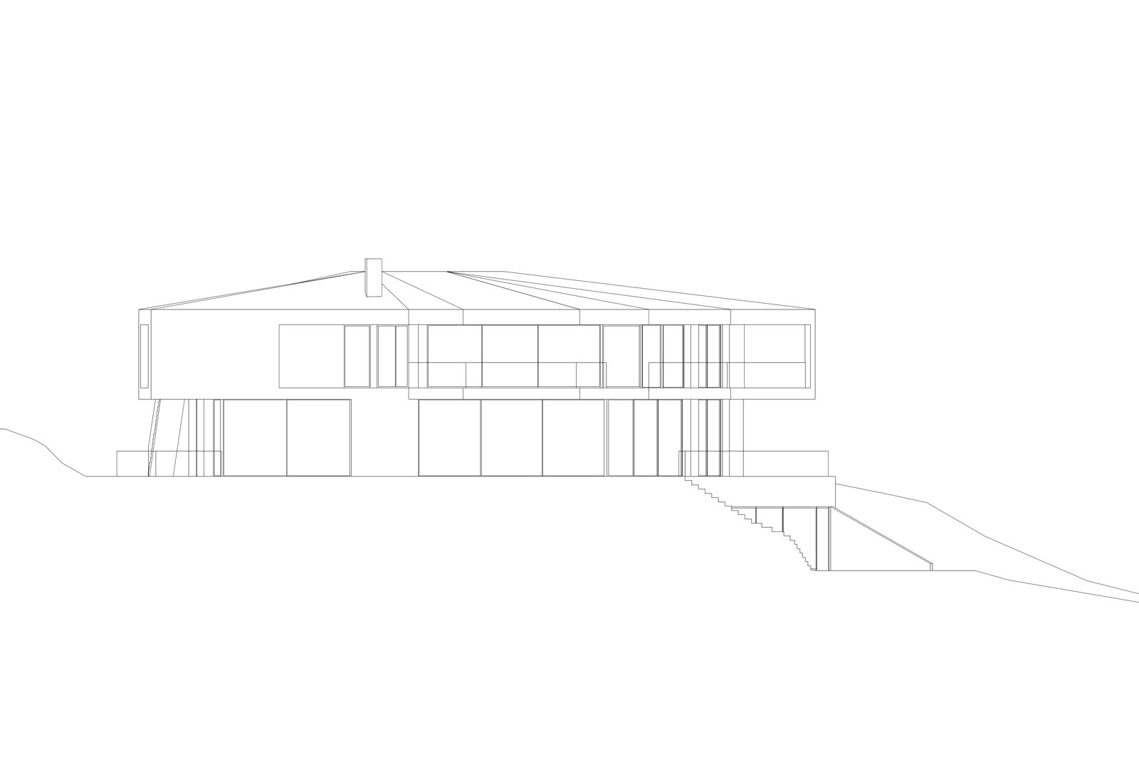 Für unseren Auftraggeber entwickeln wir ein dreigeschossiges Gebäude auf einem Grundstück in Hanglage mit attraktiver Seesicht nach Osten. Das Volumen ist um ein zentrales Atrium organisiert, das Licht und einen uneinsehbaren Aussenraum in den übertiefen Grundriss bringt. Daneben gestattet es private Bereiche auf angemessene Weise von den Räumen für Gäste und Bedienstete zu trennen.