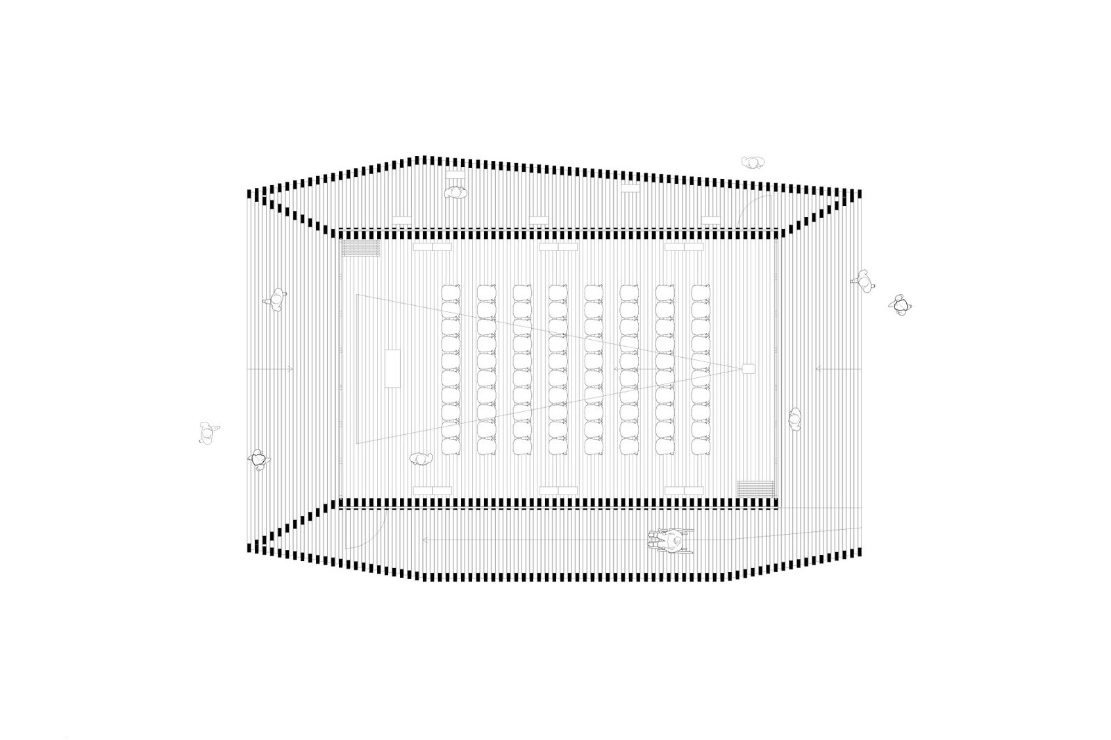 Um die Aktivitäten der Holzbranche an verschiedenen Orten sichtbar und identitätsstark zu inszenieren, wünscht PRO HOLZ eine demontierbare, mobile Raumeinheit in zeitgemässen Holzbau. Der Entwurf sieht eine zweischichtige, raumhaltige Schlaufe vor, die einen gänzlich durch Holz gefassten Innenraum brückenartig vom Erdboden abhebt. Es entsteht ein multifunktionaler Raum mit zwei dienenden, seitlichen Raumtaschen, der sowohl als Bühne für den umgebenden Kontext, sowie als introvertierter, auf sich selbst bezogener Raum funktionieren kann.