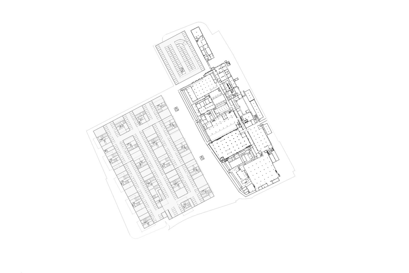Das Areal gliedert sich mit dem Hauptgebäude in den nordöstlichen Streifen entlang der Bahn und in das südwestliche Baufeld. Grundidee des Projektes ist es, das heutige räumliche Vakuum zu verdichten und entlang diesen Teil-Arealen auf einen zentralen Freiraum zu komprimieren. Er ist Reminiszenz der Siedlungsnaht zwischen Wohnen und Industrie, wird aber positiv besetzt als öffentlicher Parkraum, der neues Bindeglied und Identifikationsraum des Stadtgebiets jenseits der Bahn wird.