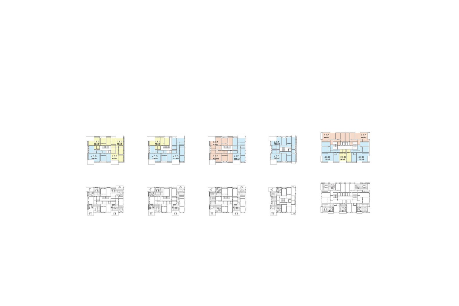 Das südliche Geviert wird als Wohn-Feld interpretiert mit dem Ziel, „Stadtwohnen im Grünen“ anzubieten. Die Symbiose von städtischem Massstab und Dichte und der Qualität des privaten Grünraums wird in der Typologie einer offenen, punktförmigen Randbebauung umgesetzt. Diese vermag zudem die Anforderungen der Etappierbarkeit optimal aufzunehmen.