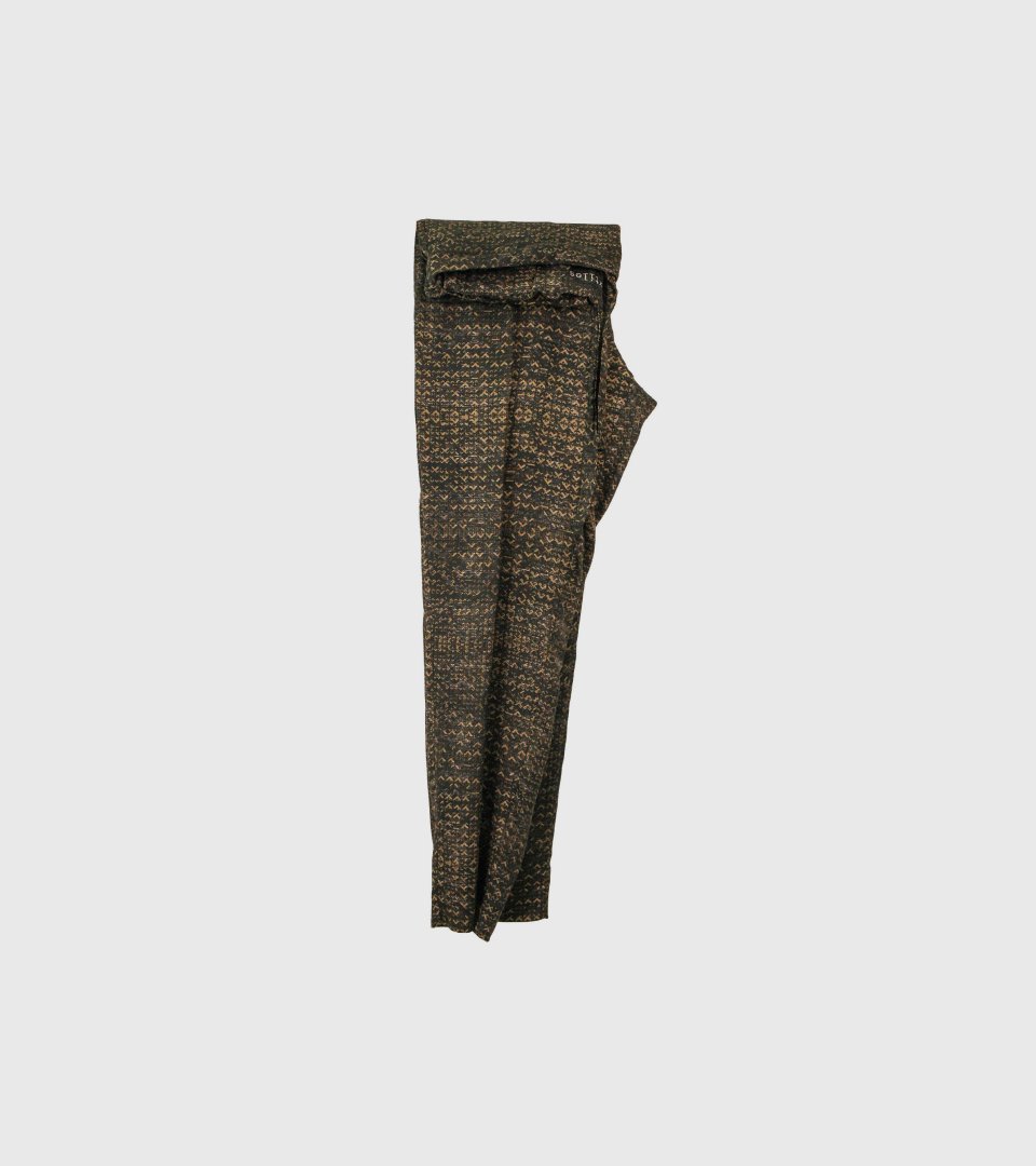 Textile is understood as a spatial medium, extending beyond fabric into surface, garment, and environment. Fibers, weaves, and constructions are selected to carry pattern with clarity and precision. The body becomes a moving plane, activating time-based structures through use.