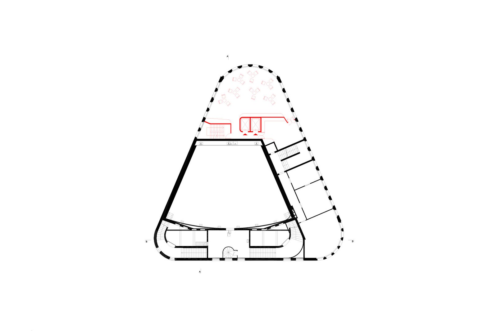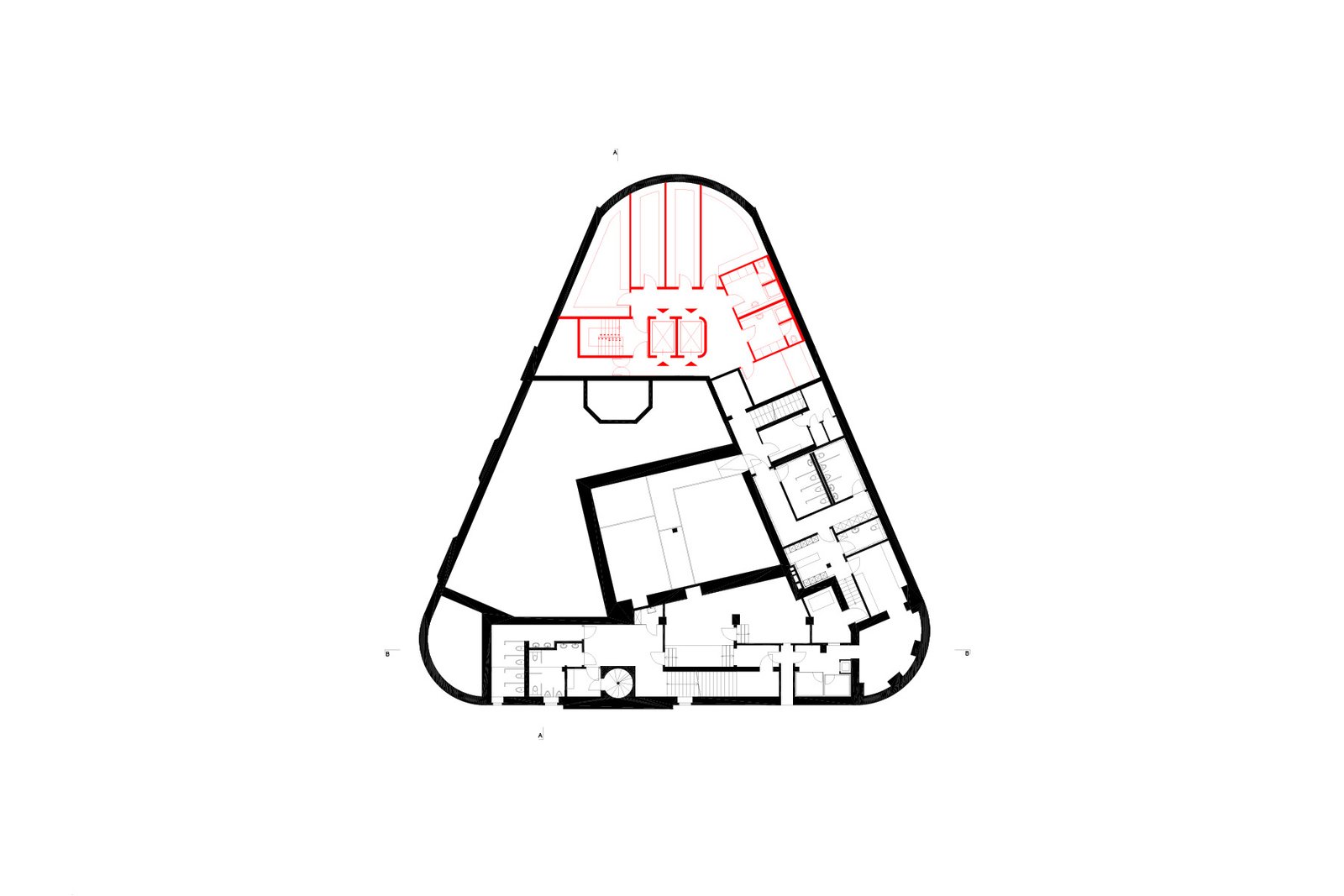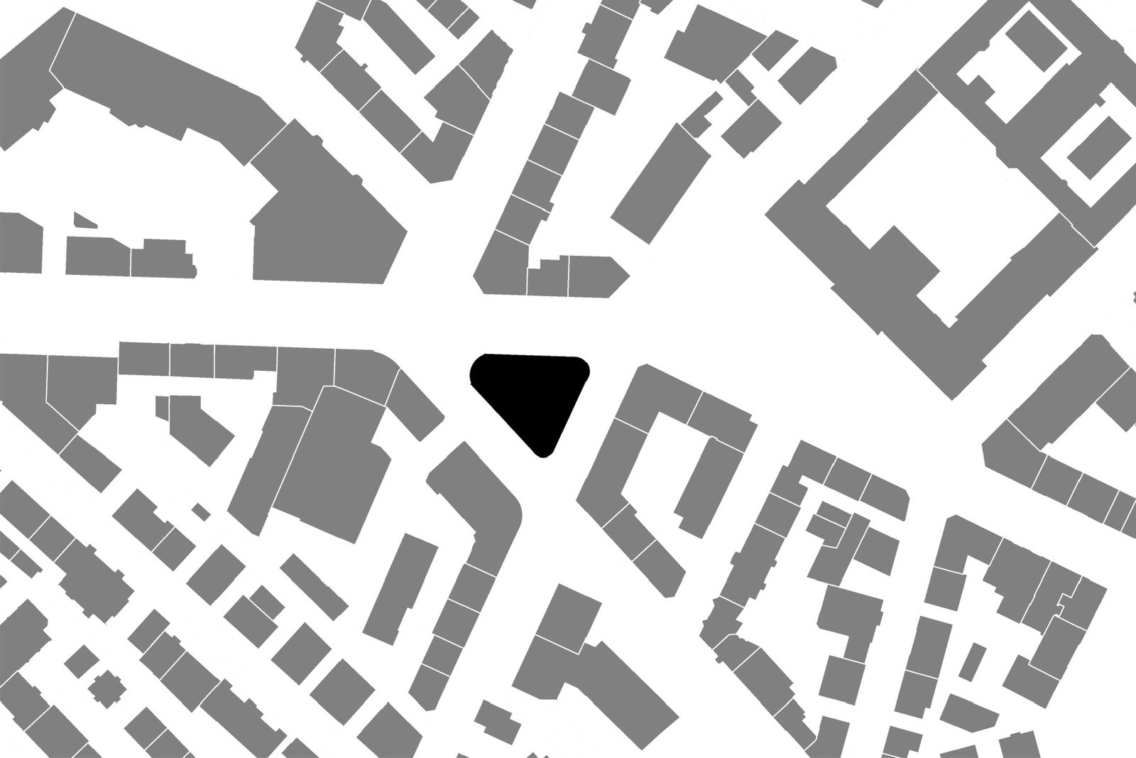 Ein einziges markantes, im Inventar der Stadt befindliches Gebäude besetzt die dreieckige Parzelle an zentraler Lage in Zürichs Kreis 4. Nach geltender Bauzonenordnung wird die zulässige Gebäudehöhe vom bestehenden Bau wesentlich unterschritten. Dieses Potential wurde im Auftrag der Eigentümerin im Rahmen einer Machbarkeitsstudie verifziert, und mit allen zuständigen Ämtern besprochen. Stadt und Denkmalpflege stehen einer Aufstockung aufgeschlossen gegenüber, die Eigentümer möchten jedoch auf ein benachbartes Grossprojekt warten, um die Möglichkeit der Parkierung vor einer Baumassnahme sicherzustellen.