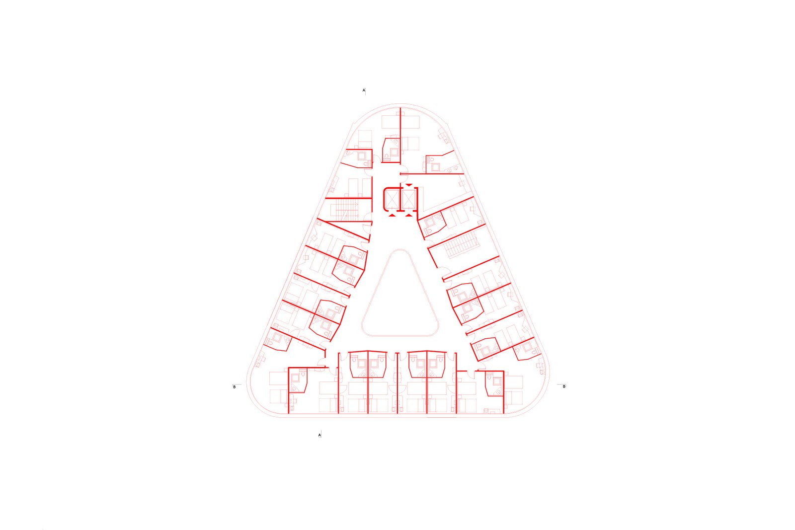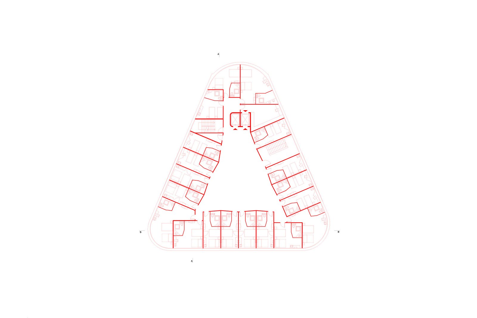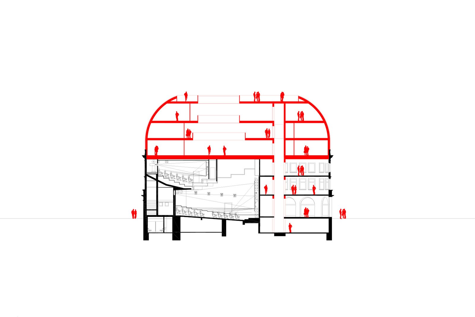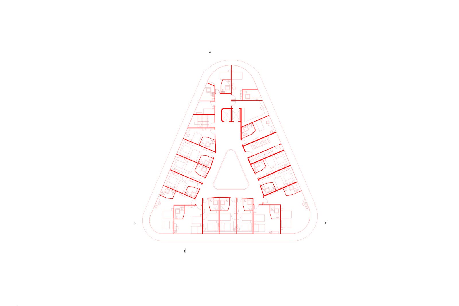 Ein einziges markantes, im Inventar der Stadt befindliches Gebäude besetzt die dreieckige Parzelle an zentraler Lage in Zürichs Kreis 4. Nach geltender Bauzonenordnung wird die zulässige Gebäudehöhe vom bestehenden Bau wesentlich unterschritten. Dieses Potential wurde im Auftrag der Eigentümerin im Rahmen einer Machbarkeitsstudie verifziert, und mit allen zuständigen Ämtern besprochen. Stadt und Denkmalpflege stehen einer Aufstockung aufgeschlossen gegenüber, die Eigentümer möchten jedoch auf ein benachbartes Grossprojekt warten, um die Möglichkeit der Parkierung vor einer Baumassnahme sicherzustellen.