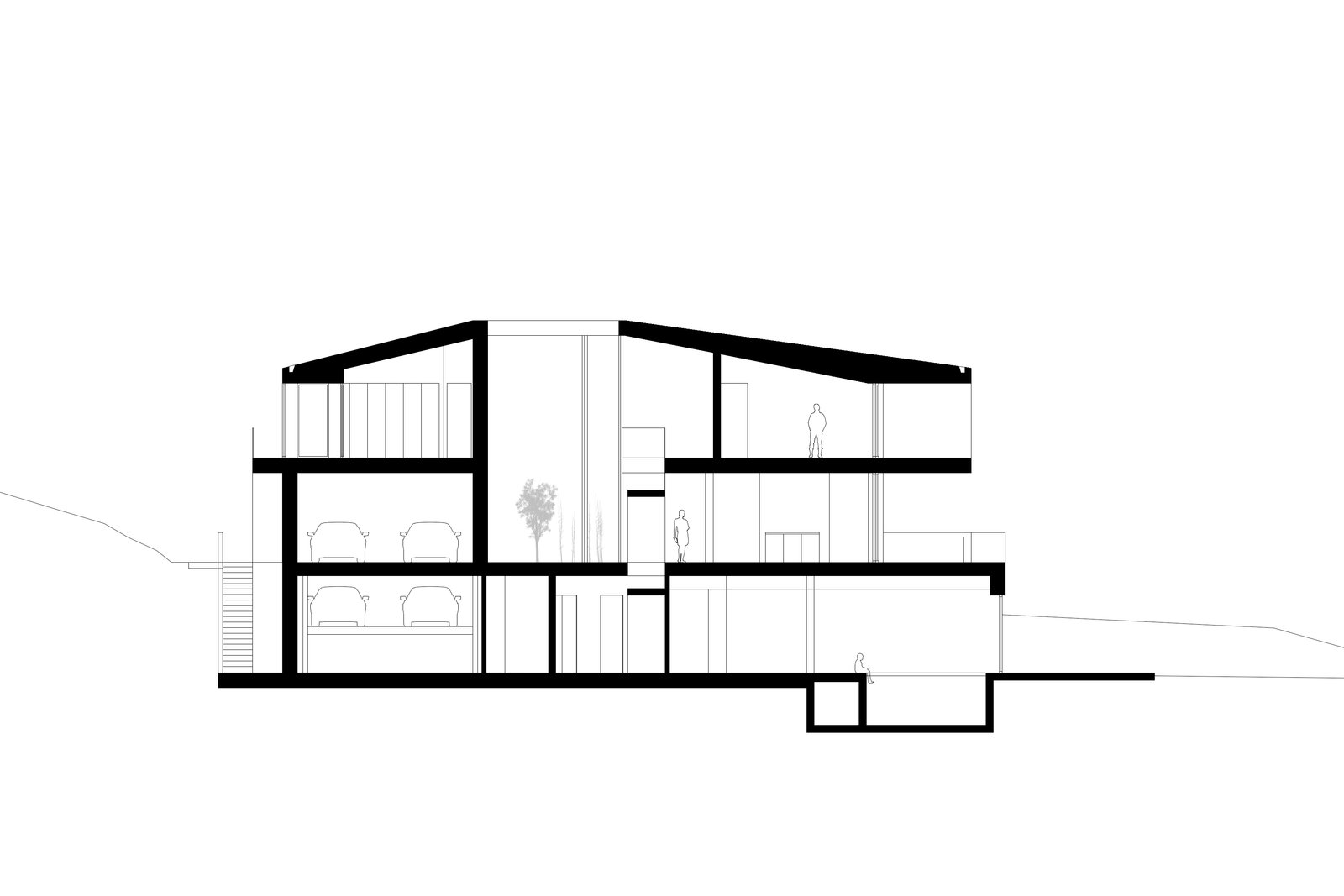 Für unseren Auftraggeber entwickeln wir ein dreigeschossiges Gebäude auf einem Grundstück in Hanglage mit attraktiver Seesicht nach Osten. Das Volumen ist um ein zentrales Atrium organisiert, das Licht und einen uneinsehbaren Aussenraum in den übertiefen Grundriss bringt. Daneben gestattet es private Bereiche auf angemessene Weise von den Räumen für Gäste und Bedienstete zu trennen.