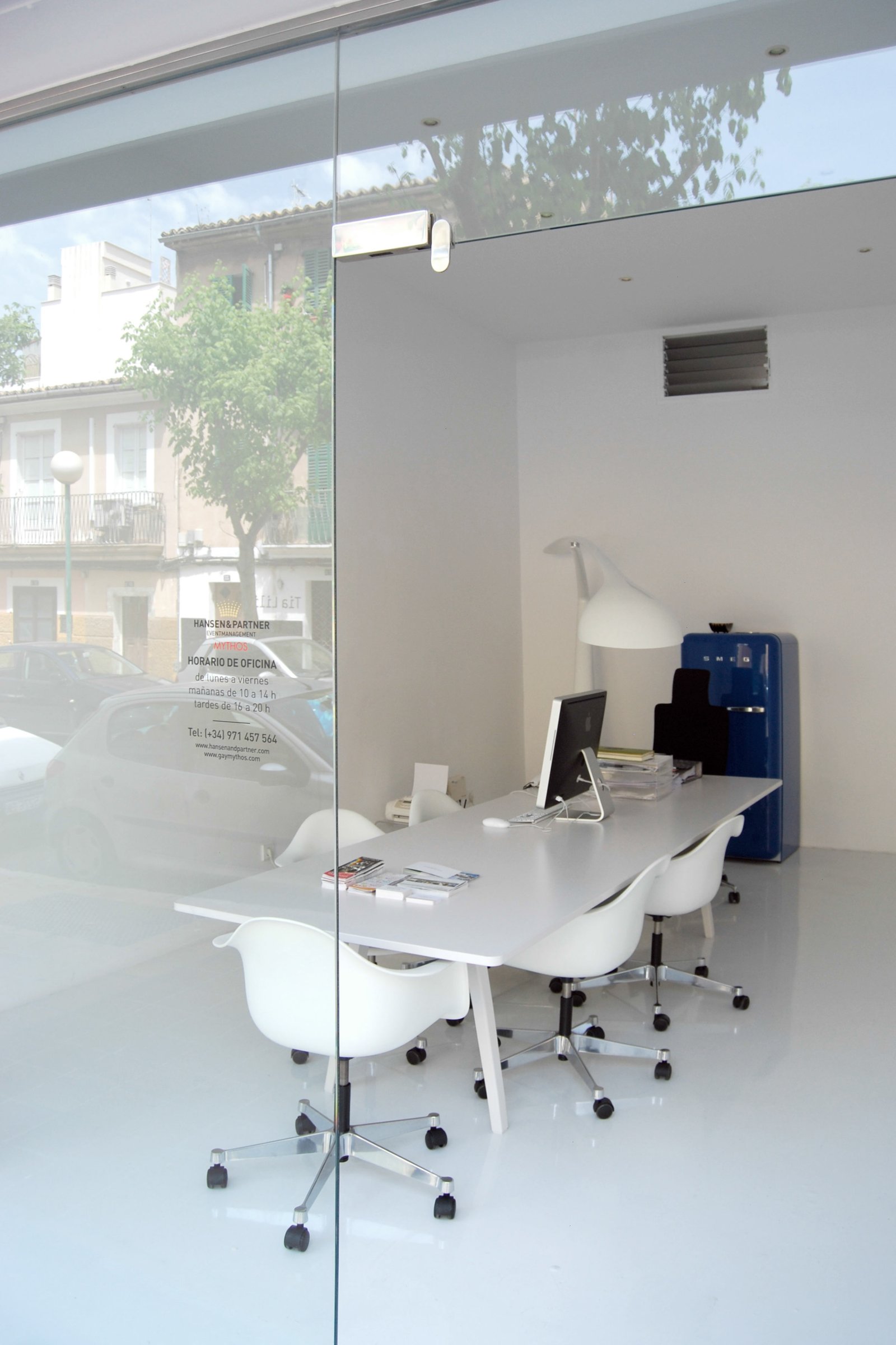 Das Büro der Eventagentur im Herzen Palma de Mallorcas erhält ein neues Gesicht innerhalb eines historischen Gebäudes. Fassade, Beschilderung und Innenausbau wurden so definiert, dass ein klarer, nach aussen transparenter Geschäftsraum mit der Promenade in Beziehung tritt, während Backoffice und dienende Räume uneinsehbar bleiben.